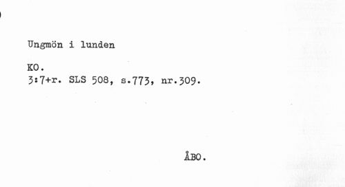 //// Ungmön i lunden KO. //// 3s7+r. SLS 508, s.773, nr.309. //// t //// ÅBO. ////