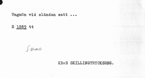 //// r //// » • . ¦ * • ... ... - • — //// Ungmön vid sländan satt ... //// E 1889 tt //// § 4/-OUO //// KB:S SKILLINGTRYCKSREG. ////