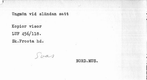 //// Ungmön vid sländan satt //// i i i fl //// Kopior visor LUF 456/118. Sk.Frosta hd. //// t //// ; //// NORD.MUS. //// l //// l ¦ //// I ////