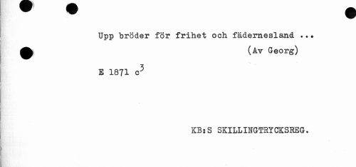 //// Upp bröder för frihet och fädernesland ... ^^ (Av Georg) //// E 1871 c5 //// KB:S SKILLINGTRYCKSREG. ////