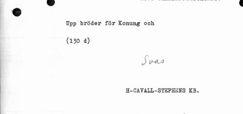 //// Upp bröder för Konung och (130 d) //// ¦V //// H-CAVALL-STEPHENS KB. ////