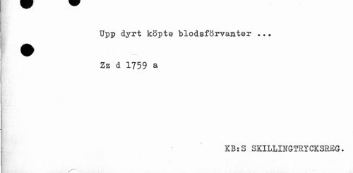 //// Upp dyrt köpte blodsförvanter ?.? //// Zz d 1759 a //// KB:S SKILLINGTSYCKSREG. //// v ////
