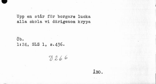 //// t //// Upp en står för borgare lucka alla skola vi därigenom krypa //// ... ! //// - //// Öb. //// 1:24, SLS 1, s.436. //// ÅBO. //// r* ////