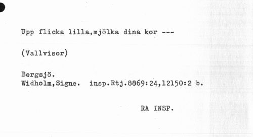 //// f //// Upp flicka lilla,mjölka dina kor --- //// (Vallvisor) Bergsjö. //// Widholm,Signe. insp.Rtj.8869$24,12150:2 b. //// BÅ INSP. ////