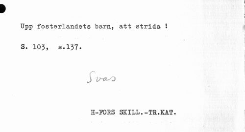 //// w //// \ //// Upp fosterlandets barn, att strida ! j //// 9 //// s. 103, s.137. //// j //// H-FORS SKILL.-TR.KAT. | ////
