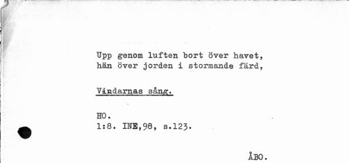 //// flff&V 'h ¦ //// Kf //// ¦m1 //// w //// n //// Upp genom luften bort över havet, hän över jorden i stormande färd, //// Vindarnas sång. //// » //// HO. //// ^ 1:8. INB,98, s.123- //// ÅBO. ////