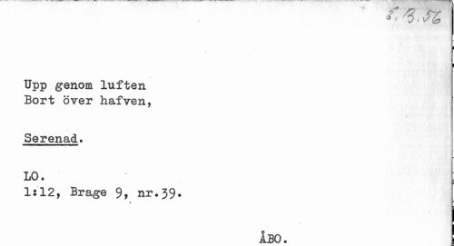 //// wmrm //// Upp genom luften Bort över hafven, //// Serenad* //// LO. //// 1:12, Brage 9, nr.39. //// » //// ÅBO. I ////