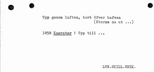 //// Upp genom luften, bort öfver hafven //// (Storma nu ut ..?) //// 1858 Kamrater 1 Upp till //// ) //// LTJB. SKILL. UNIK. ////