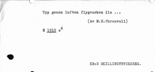//// Upp genom luften flygvarken ila //// (Av M.H.Chronvall) //// B 1910 s4 //// 4 //// KB:S SKILLINGTRYCKSREG. ////