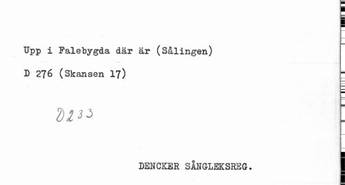 //// Upp i Falebygda där är (Sålingen) //// D 276 (Skansen 17) - //// dl^ \ //// DENCKER SMGLEKSREG. | ////