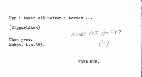 //// Upp i taket slå näfven i bordet ... (Tiggarlåten) , //// Utan prov. //// Mskpt. L.s.685. C*r) //// NORD •MUS. ////