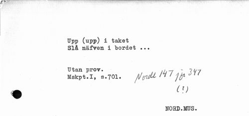 //// Upp (upp) i taket Slå näfven i bordet ... //// Utan prov. _ - t hy //// Mskpt.1, S.701. //(jieU n ' jfr >1' //// NORD.MUS. ////