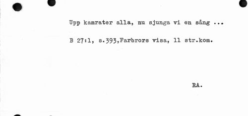 //// Upp kamrater alla, nu sjunga vi en sång . B 27:1, s.393,Farbrors visa, 11 str.kom. //// RA. ////