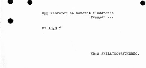 //// Upp kamrater se baneret fladdrande __framgår ... //// Zz 1878 f //// KBsS SKILLINGTRYCKSREG. ////