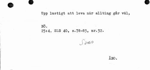 //// Upp lustigt att leva när allting går väl, //// Bö. //// 25:4, SLS 40, s.78-8?, nr.32. //// ÅBO. ////
