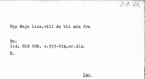 //// bO, //// Upp Maja Lisa,vill du "bli min fru Br. //// 1:4, SLS 508, s.923-924,nr.414. I. //// 1 //// ÅBO. | ////