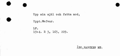 //// Upp min själ och fatta mod, //// fljB) //// ^^ Uppt .V/ef var. //// LP. //// 19:4. S 3, 165, 209. //// ÅBO,BAICKEN MS. //// » //// é ////
