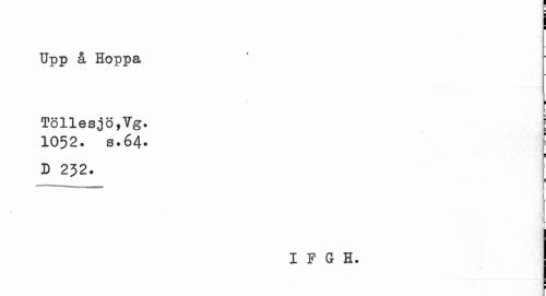 //// ¦ //// ! //// Upp å Hoppa //// / i Töllesjö,Vg. c //// 1052. s.64. [ //// j ¦ //// D 232. //// = //// I F G H. //// i i ////