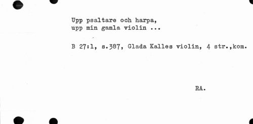 //// Upp psaltare och harpa, upp min gamla violin ?. ? //// z» //// B 27sl» s.387, Glada Kalles violin, 4 str.,kom. //// RA. ////