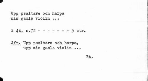 //// Upp psaltare och harpa min gamla violin •.• //// t f //// / ^ //// B 44, s*72---5 str. j //// ¦ //// Jfr. Upp psaltare och harpa, upp min gamla violin ... //// HA. //// k i ////
