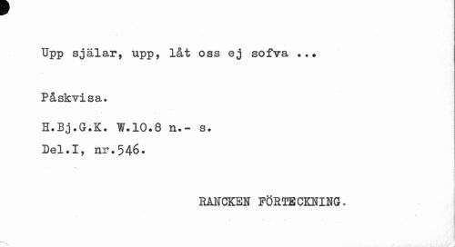 //// w //// Upp själar, upp, låt oss ej sofva ••• Påskvisa. //// 11 //// .. . //// H.Bj.G.K. W.10.8 n.- s. Del.I, nr.546. //// RMCKEN FÖRTE CKNINÖ. //// ¦ //// I ////
