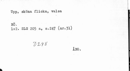 //// Upp, sköna flicka, valsa I //// Bö. I //// 1:2. SLS 205 a, s.247 (nr.3l) I //// I //// ÅBO. [ //// k I ////