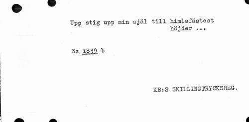 //// Upp stig upp min själ till himlafästest //// höjder //// Zz 1839 b //// KB:S SKILLINGTRYCKSBEG. //// i ////
