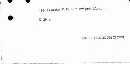 //// Upp svenska folk hör kriget dånar ... w1^ T 28 a //// j ! //// KB:S SKILLINGTSYCKSREG. //// I //// ! i //// i //// ¦ //// ^ ---—-^trl—---'V—--- - ~ ^ V ////