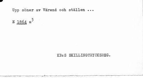 //// Upp söner av Värend och ställen ... //// I //// E 1864 a5 //// mmmmmmmmmém //// KB:S SKILLINGTRYCKSREG. ////