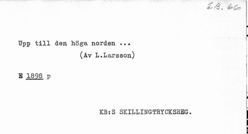 //// ¦ //// | //// Upp till den höga norden //// (Av L.Larsson) //// S 1898 p //// i //// KBsS SKILLINGTRYCKSREG. j ////