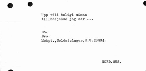 //// Upp till heligt minne tillbedjande jag ser . //// Bo. Bro. //// Mskpt.,Soldat sånger,E?U.28384. //// > //// NORD.MUS. ////