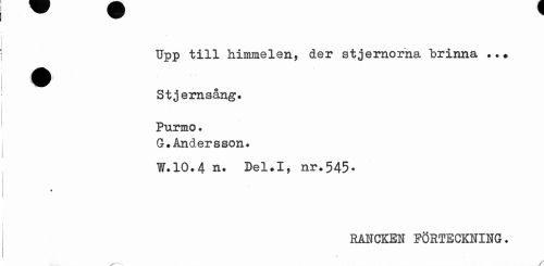 //// Upp till himmelen, der stjernorna brinna . //// Stjernsång. Purmo. //// G.Andersson* //// ¥•10.4 n* Del.I, nr.545. //// RANCKEN FÖRTECKNING. ////