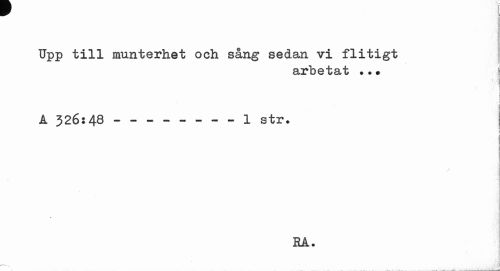 //// Upp till munterhet och sång sedan vi flitigt //// arbetat ••» j //// t r //// A 326:48---1 str. //// 1 //// I //// i //// j //// i //// / tji //// RÅ. ////