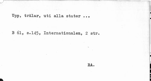 //// ¦ //// Upp, trälar, uti alla stater ... //// B 61. s.145, Internationalen, 2 str# //// # //// 1 //// HA. j //// t l ////