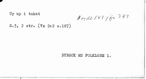 //// Up up i taket * n //// S.3, 2 str. (Vs 2:2 s.187) //// DYBECK MS FOLKLORE 1. ////