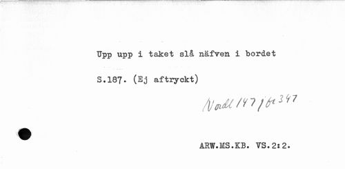 //// Upp upp i taket slå näfven i bordet //// ^ i.- „, //// S.187. (Ej af tryckt) //// /V*dt/n/å<*97 //// ARW.MS.KB. 7S.2:2. ////