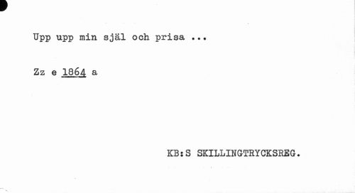 //// Upp upp min själ och prisa //// Zz e 1864 a //// KB:S SKILLINGTRYCKSRBG. ////