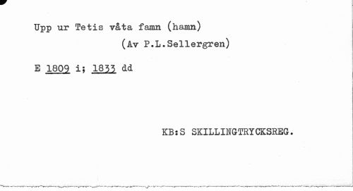 //// Upp ur Tetis våta famn (hamn) //// (Av P.L.Sellergren) //// E 1809 i; 1855 dd . //// KB:S SKILLINGTRYCKSREG. ////