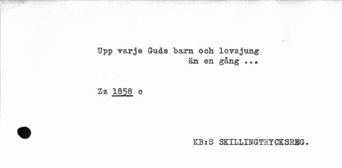 //// Upp varje Guds barn och lovsjung //// än en gång •.» //// Zz 1858 c //// ^ KB:S SKILLINGTRYCKSREG. ////