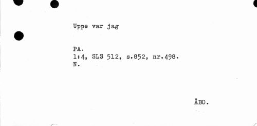 //// Uppe var jag PA. //// 1«4, SLS 512, s.852, nr.498. et. //// ÅBO. //// * ////