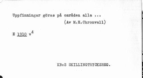 //// Uppfinningar göras på områden alla ... //// (Av 1 .H.Chronval1) //// E 1910 v4 //// KB: S SKILLINGTEYCKSREG. I //// k i ////