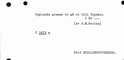 //// Upplands gossar vi gå ut till Uppsala //// i år •.• //// (Av G.E.Norlin) //// Y 1872 g //// kb:s skilliugthycksreg. ////