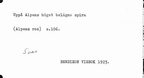//// f //// j- //// Uppå Alpens högst belägna spira r //// p //// (Alpens ros) s.106. g //// J CA^ //// BENDIXON VISBOK 1923. j //// i //// I ////