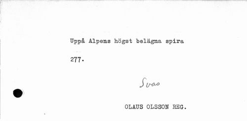 //// Uppå Alpens högst belägna spira //// 277. //// OLAUS OLSSON REG. //// * ////