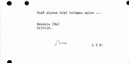 //// W w * //// Uppå alpens högt belägna spira ... //// Svedala (Sk) 6172:20. //// P*"* L UF. //// \ ////