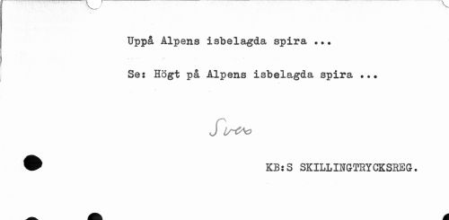 //// Uppå Alpens isbelagda spira //// Se: Högt på Alpens isbelagda spira //// ® kb: s skillihgtrycksbsg. //// Ä A M ////