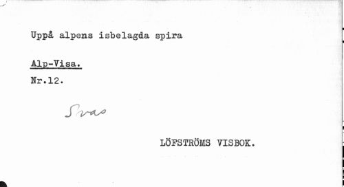 //// I //// Uppå alpens isbelagda spira I //// Alp-Visa. Nr.12. //// I //// ¦ //// LÖFSTRÖMS VISBOK. : //// k l ////