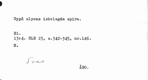 //// Uppå alpens isbelagda spira. Hi. //// 13:4. SLS 23, s.342-345, nr.146. //// N. //// ÅBO. ////