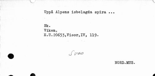 //// Uppå Alpens isbelagda spira ... Sk. //// Viken, //// E.U.20653,Visor,IV, 119• //// . . ¦ f .- cf //// HORD.MOS. ////