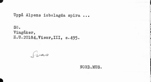 //// = //// Uppå alpens isbelagda spira ..? //// i //// Sö. //// Vingåker, ! //// E.U.20184,Viaor,III, s.495» //// NOHD.MJS. //// I //// ^ 1 ////